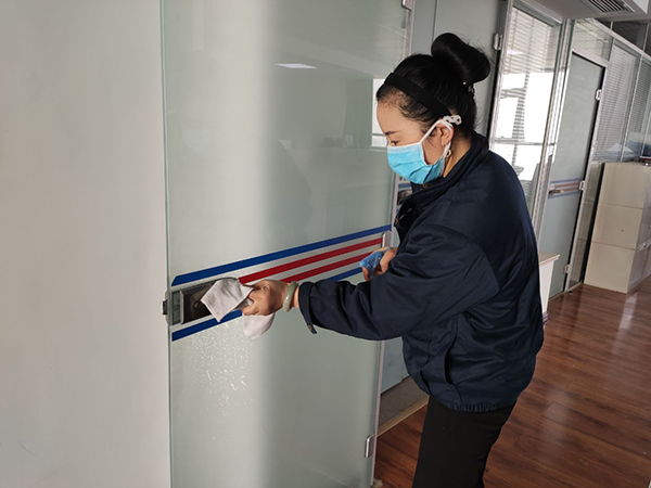 公司為在崗員工發(fā)放了口罩、噴壺、消毒酒精等防護(hù)用品,每日對(duì)各工作場(chǎng)所、班車、車庫(kù)、電梯、宿舍等進(jìn)行定點(diǎn)消毒。