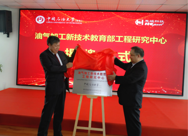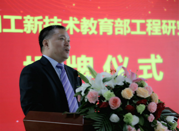 在熱烈的掌聲中,郝芳校長、逯鷹部長一起為“油氣加工新技術教育部工程研究中心”揭牌。