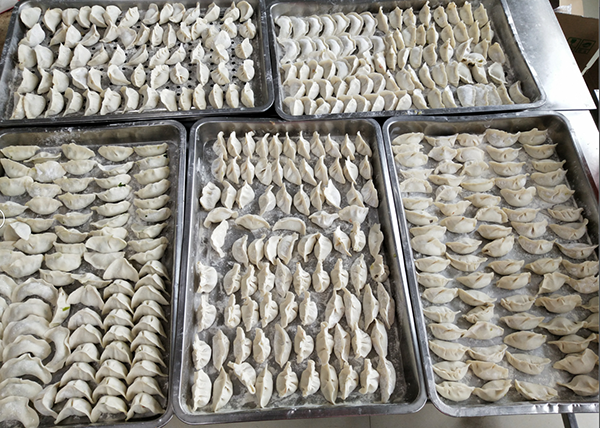 家齊心協(xié)力,用心包出的餃子如一排排元寶華麗亮相。每一個(gè)餃子都代表對(duì)員工的一份關(guān)愛,一份祝福。
