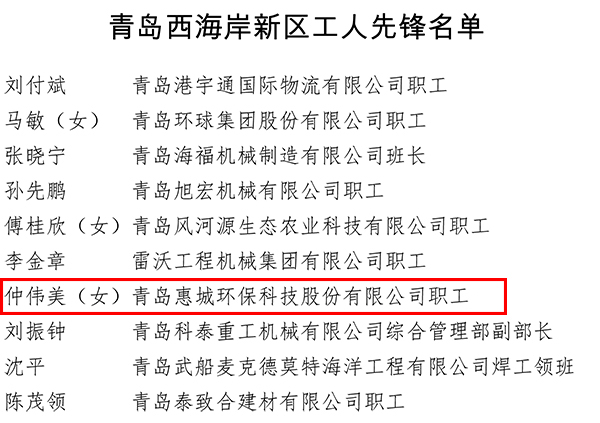 為大力弘揚勞模精神、勞動精神、工匠精神,激勵全區(qū)廣大職工愛崗敬業(yè),爭創(chuàng)一流,日前,青島西海岸新區(qū)總工會發(fā)起了新區(qū)工人先鋒(號)的推薦評選工作。經(jīng)過考察評比,我公司銷售團(tuán)隊和仲偉美個人喜獲 “工人先鋒號”和“工人先鋒”榮譽(yù)稱號。