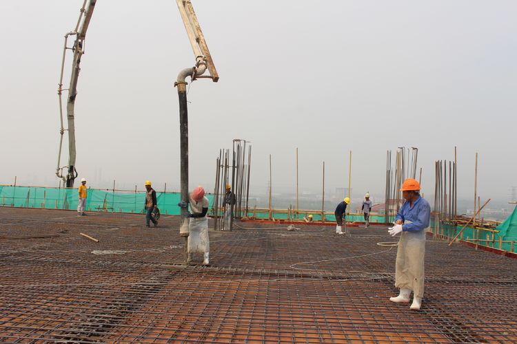 在施工單位的帶領下,公司領導來到分子篩廠房頂層參觀建設情況。分子篩廠房建筑面積22308㎡,是整個項目中面積最大、工程量最大、施工難度最大,設計、工藝最復雜的建筑單體。在臺風、高溫極端天氣及交叉作業(yè)、疫情等諸多不利因素影響下,為加快推進建設進程,項目建設指揮部全體成員放棄節(jié)假日休息,以“5+2”、“白+黑”的戰(zhàn)斗精神,全部深入一線進行質量檢查和安全督導,他們迎難而上、披荊斬棘,是惠城精神的真實寫照;施工單位增加人員、機械設備,安排工人三班倒作業(yè),保證施工現(xiàn)場24小時不停工;監(jiān)理、勘察、造價等參建單位加班加點,“隨叫隨到,不叫也到”......各方精誠合作,共同推進,終于迎來了8月10日這一封頂時刻。