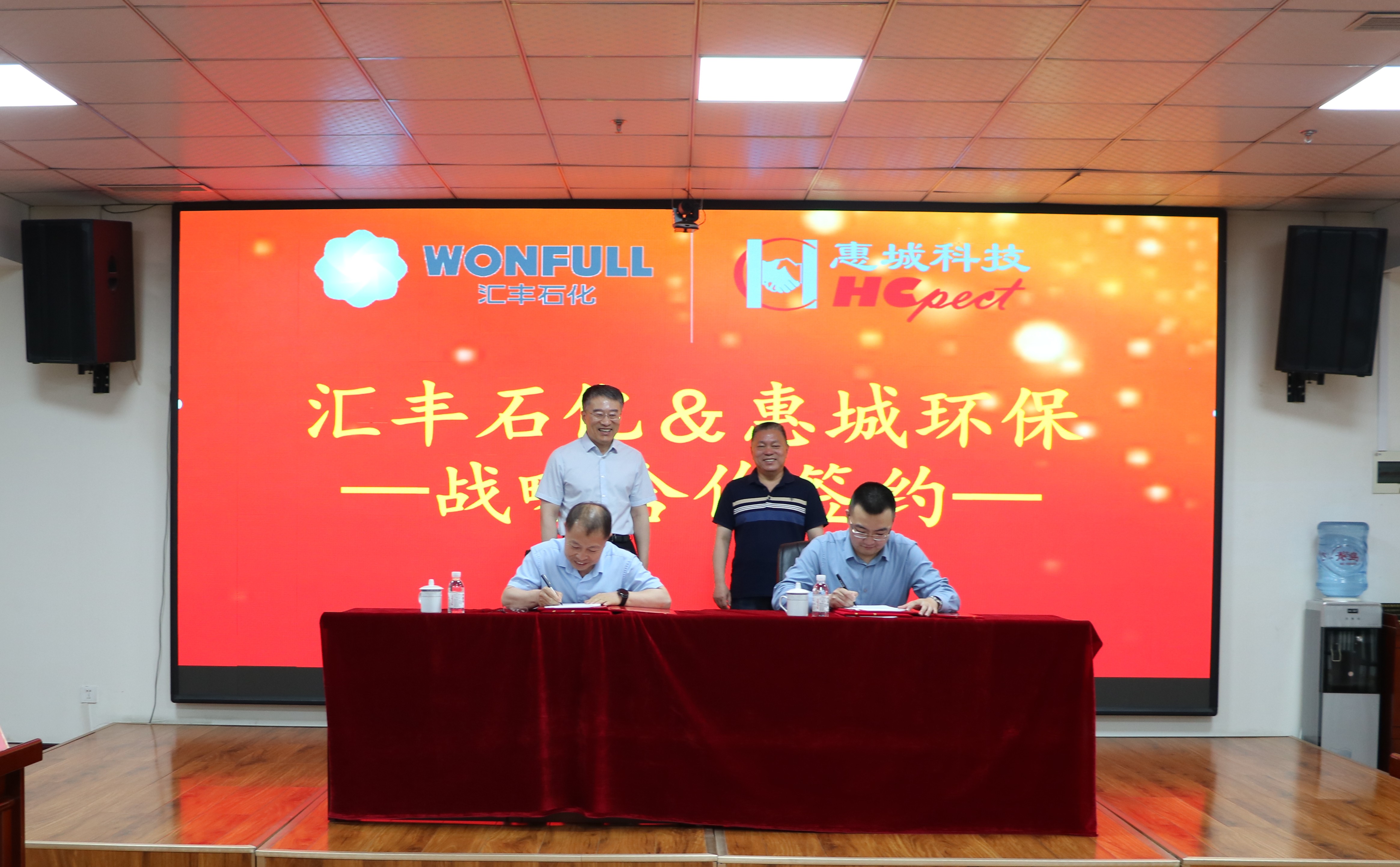 為進(jìn)一步推動(dòng)綠色循環(huán)經(jīng)濟(jì)高質(zhì)量可持續(xù)發(fā)展,加快先進(jìn)環(huán)保技術(shù)成果轉(zhuǎn)化落地,5月18日,青島惠城環(huán)??萍技瘓F(tuán)股份有限公司(以下簡(jiǎn)稱(chēng)“惠城環(huán)保”)與山東匯豐石化集團(tuán)有限公司(以下簡(jiǎn)稱(chēng)“匯豐石化”)戰(zhàn)略合作簽約儀式在惠城環(huán)保研發(fā)大樓418會(huì)議室隆重舉行。匯豐石化總裁李波、總工程師王瑞旭,惠城環(huán)保創(chuàng)始人張新功、總經(jīng)理林瀚等出席簽約儀式。