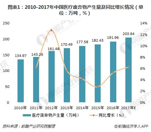 近年來,伴隨著醫(yī)學(xué)技術(shù)進(jìn)步及人民生活水平、健康狀況的提高,臨床上大量使用一次性醫(yī)療衛(wèi)生用品,醫(yī)療廢棄物的產(chǎn)生量大幅提升。據(jù)前瞻產(chǎn)業(yè)研究院測算,2016年,我國醫(yī)療廢棄物產(chǎn)生量已達(dá)到191.96萬噸,同比增長5.22%。
