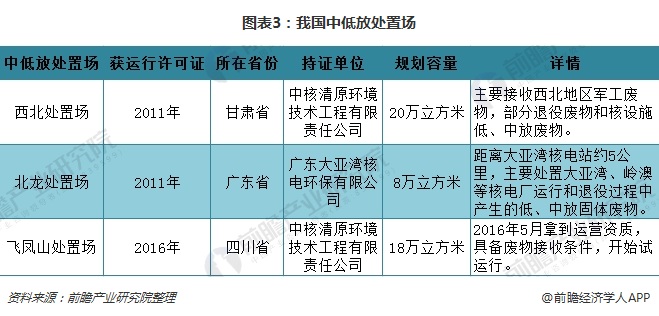 另外,以每年每臺核電機(jī)組產(chǎn)生60立方米固體廢物包計(jì)算,預(yù)計(jì)2020年我國每年將產(chǎn)生多達(dá)3480立方米的固體廢物。然而,我國目前僅有中低放核廢料處置場3座,分別為西北處置場、北龍?zhí)幹脠鲆约帮w鳳山處置場,其規(guī)劃容量分別20萬立方米、8萬立方米以及18萬立方米。因此,我國中低放處理能力十分緊缺,按照國務(wù)院印發(fā)的“十三五”生態(tài)環(huán)境保護(hù)規(guī)劃,提出要建設(shè)5座中低放射性廢物處置場。