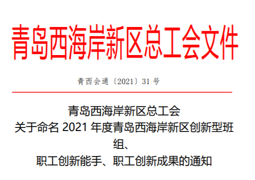 近日,青島西海岸新區(qū)總工會(huì)發(fā)布通知,公布“2021年度青島西海岸新區(qū)創(chuàng)新型班組、職工創(chuàng)新能手、職工創(chuàng)新成果”評(píng)選情況,公司工程技術(shù)研究中心榮獲新區(qū)創(chuàng)新型班組殊榮,該部門副主任呂靈靈、副主任工程師仉杰當(dāng)選新區(qū)職工創(chuàng)新能手。[ 查看更多 ]