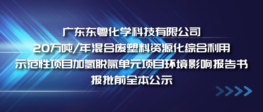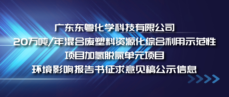 廣東東粵化學科技有限公司20萬噸/年混合廢塑料資源化綜合利用示范性項目加氫脫氯單元項目環(huán)境影響報告書征求意見稿公示信息